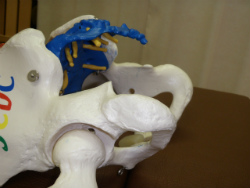 次に反対側の腸骨稜に脊柱に対して水平にブロックを入れます。