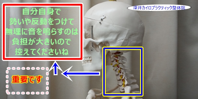 首のバランスを整えてあげるために、瞬間的に圧を加えるのですが、その際にたまたま音がなるわけです。