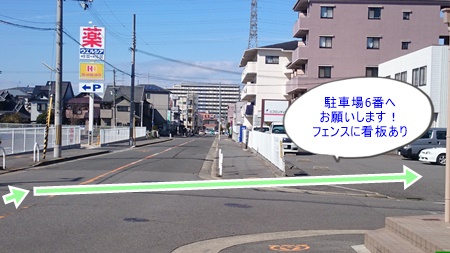 駐車場は当院目の前の駐車場6番にお車を入れて頂きます様お願い致します。
