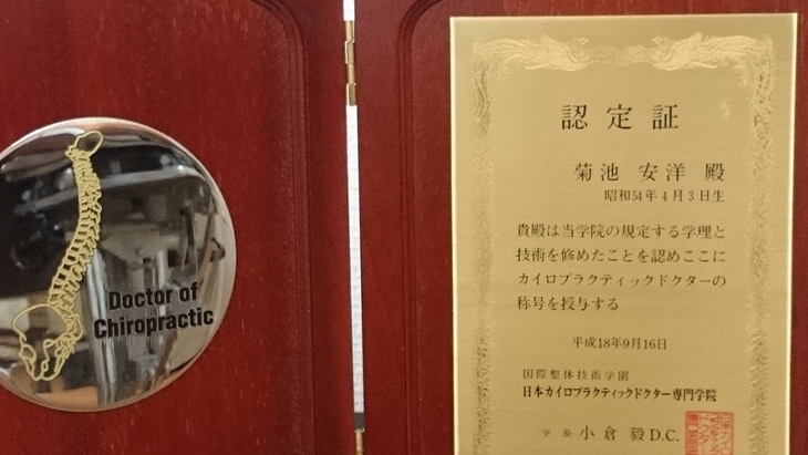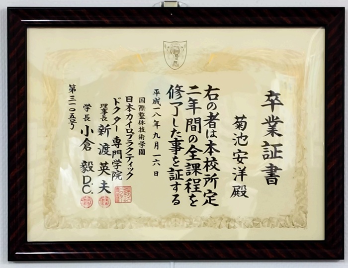 2006年9月16日卒業 国際整体技術学園 日本カイロプラクティックドクター専門学院 卒業